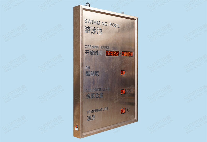 游泳池玫瑰金不锈钢电子看板