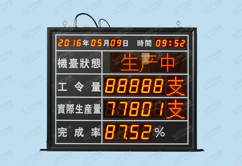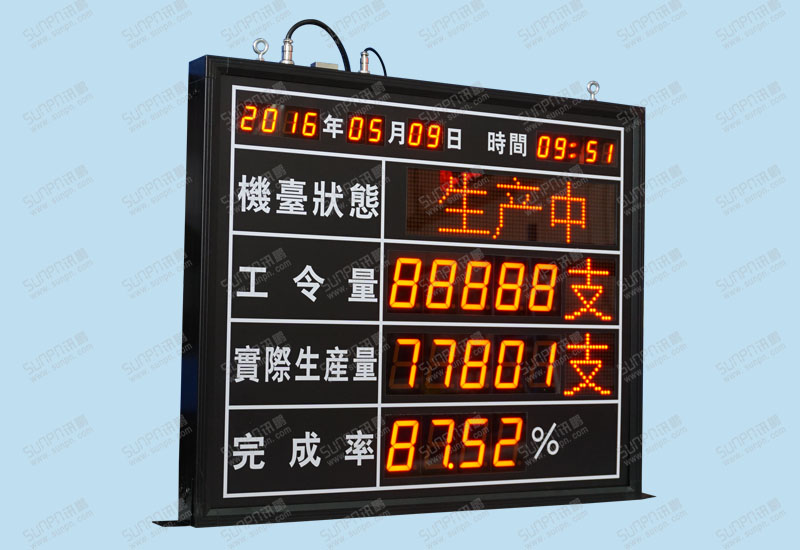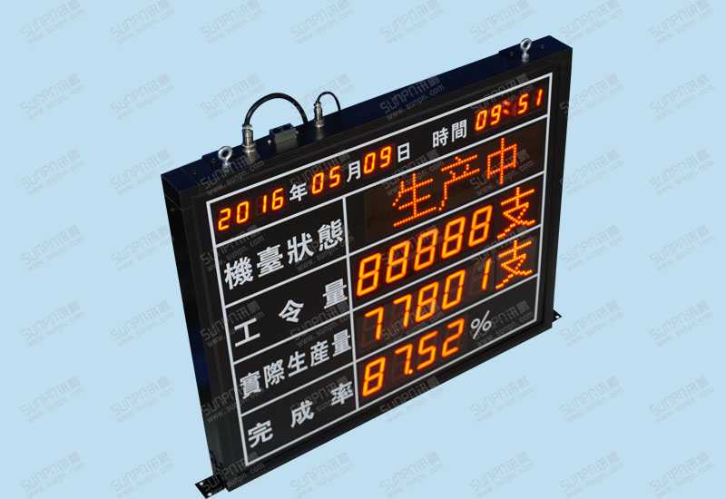 机台状态:点阵看板储存4种状态;1、生产中 2、停机待料 3、换模中 ;