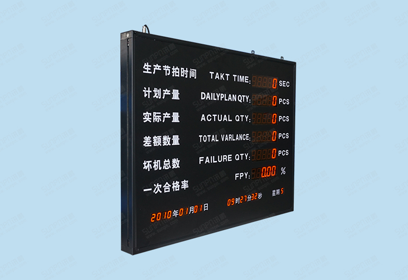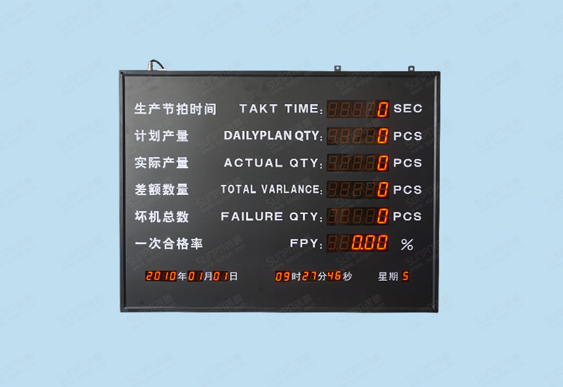 1.看板数据通过RS485发送数据到电子看板,数据位数均为5位,一次合格率栏显示小数点。