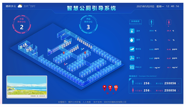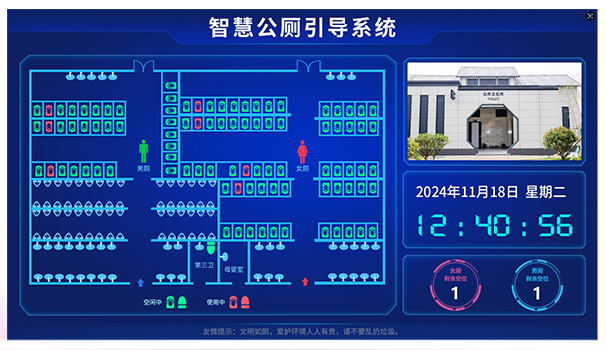 首先从技术层面来看,当前的智慧厕所建设引入了信息通讯、物联网、互联网等技术,并利用现代智能控制、传感传导等技术,搭建景区智慧厕所解决方案,对厕所内空间平面图、厕位现状、实时温度、湿度、空气质量等大数据显示专用智能显示屏上,引导群众有序进入如厕。